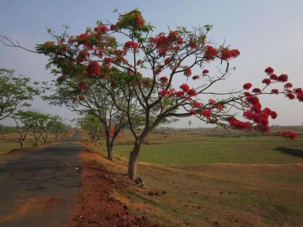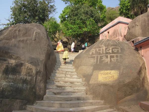 ফিরে এসে আশ্রমের ভিতরের মন্দিরে সন্ধ্যারতি দেখলাম। ডিনারে রুটি-সবজি খেয়ে পৌঁছে গেলাম ঘুমের দেশে। পরদিন সকালে চললাম তপোবন ও ত্রিকূট পর্বত দেখতে। বাহন সেই অটো। পিচের রাস্তা ধরে যেতে যেতে পড়ল খোলা প্রান্তর, তালগাছের সারি, মাঝে মাঝে প্রাচীন বট, অশ্বত্থ, ইতস্তত জঙ্গল। সকালে ফুরফুরে ঠান্ডা বাতাস বইছে। একটু পর রাস্তাটা বাঁক নিতেই একটা অদ্ভুত সুন্দর দৃশ্য। দুধারে সারি বেঁধে দাঁড়িয়ে কৃষ্ণচূড়া আর পলাশ। লাল লাল ফুলে সূর্যের কিরণ পড়ে ঝলমল করছে। ওই পথ ধরে আর একটু যেতেই তপোবন। অনেকটা উঁচু পাহাড়ের উপর শিবমন্দির। রামায়ণের কাহিনিতে আছে এর উল্লেখ।