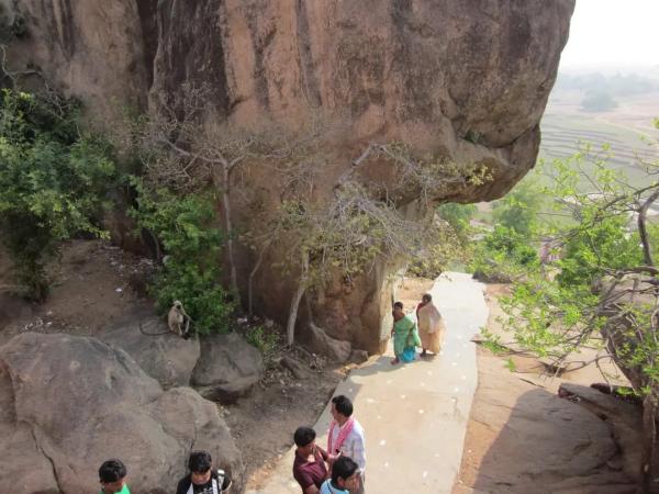 মন্দিরে ওঠার ক্ষেত্রে বেশ মজার নিয়ম চালু এখানে। সিঁড়ি দিয়ে ওঠা আর পাহাড় বেয়ে নামা। যতই কষ্ট হোক, নিয়ম মেনেই দর্শন করতে হবে। যেতে যেতে দেখি, পাহাড়ের এধার-ওধার থেকে বাঁদর ও হনুমান পরিবারের আনাগোনা। অনেকেই তাদের ফল খেতে দিচ্ছেন। সে ভারি মজার দৃশ্য ! একজন গাইড ছিলেন সঙ্গে। তাঁর হাত ধরে সিঁড়ি তো চড়তে শুরু করলাম। তারপরের কথা অবর্ণনীয়। কোথাও খাড়া সিঁড়ি, কোথাও গুহা, মাথা নিচু করে কোনও মতে নামতে হবে এমন নিচু আর সরু কাঠের ও সিমেন্টের সিঁড়ি। নামার সময় তো আরও কঠিন অবস্থা। স্রেফ খাড়া পাথর। কিছু কিছু জায়গায় চেটানো পাথরের ওপর দিয়ে শুধু শূন্যে ব্যালান্স করে নামতে হবে। যখন মাটিতে পৌঁছলাম, বিশ্বাস হচ্ছিল না।